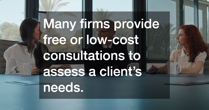 • Initial consultations: Many firms provide free or low-cost consultations to assess a client’s needs.